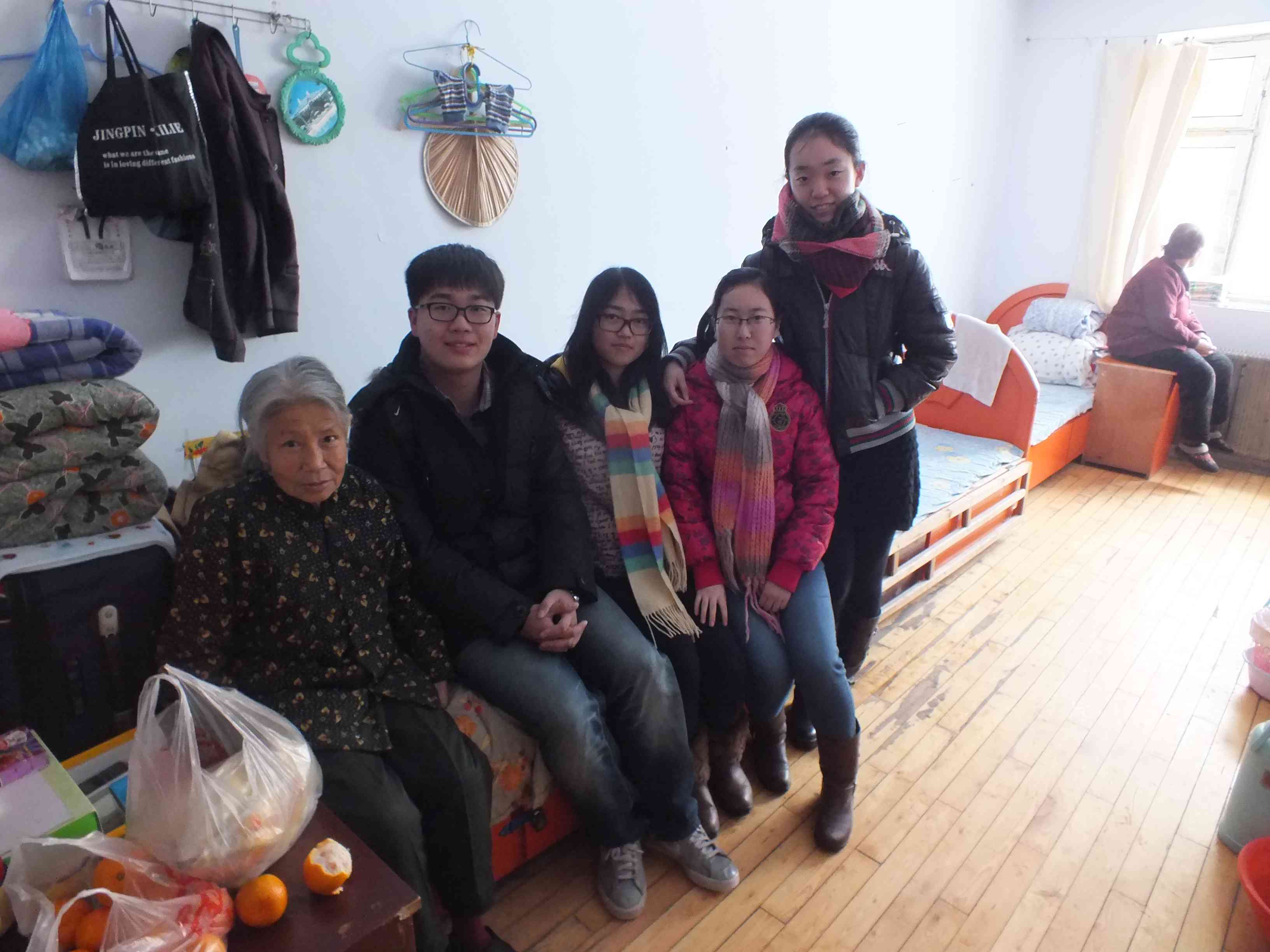 活动开始前,老年公寓的主要负责人向同学们简单介绍了院内老人的生活状况,管理员告诉同学们,这里的老人大多是空巢老人和孤寡老人,平时来探望的人较少,缺乏关心和交流。在管理员介绍完毕后,同学们纷纷带着为老人们精心准备的水果走进老年公寓与他们谈心交流,并帮助老人们整理内务、打扫卫生。在与老人交流的过程中,同学得知年逾古稀的王祥老人曾经是长春一汽汽车制造厂的一名工人。他向同学们娓娓道来自己年轻时的工作经历,同时还教育“同学们一定要珍惜时间,好好学习,为祖国的现代化建设贡献自己的力量”。老人的话使在场的学生受到了巨大的鼓舞,行政学子表示要以最优秀的成绩来回报祖国。行政管理四班同学与老人积极的互动,孙昕聪为大家表演了太极拳,赢得了老人们的一致好评。在活动接近结束时,行政学子与老人合影留念,依依惜别。