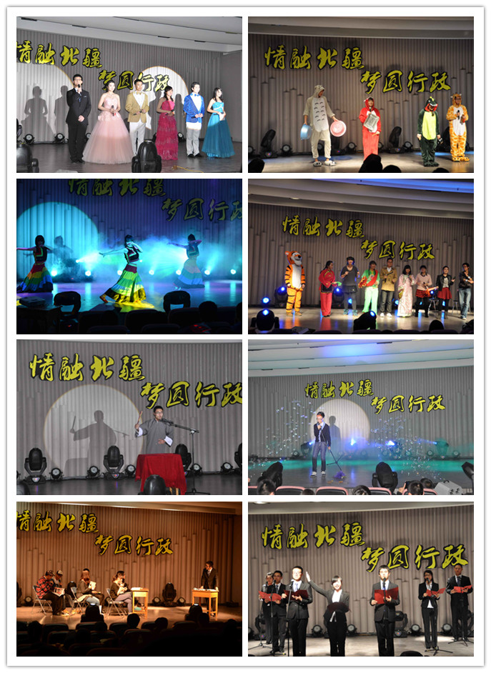 整场迎新晚会既有歌曲、舞蹈、武术表演,也有小品、诗朗诵、评书和三句半,还有吸引人眼球的时装秀,古典与现代相融,温婉与动感并存,可谓隆重盛大、精彩纷呈。《老男孩》的深情对唱,体现了同学之间的真挚情谊;三句半的演员们身着“萌宠”睡衣、手拿生活用具、以幽默诙谐的台词将2013级同学初入大学至今的种种场景刻画得淋漓尽致;研究生同学的动情演唱,吉他弹唱的动听歌曲,精彩的歌曲串烧让观众如痴如醉;充满民族特色的舞蹈串烧让观众领略到了民族艺术的魅力;古风古韵、柔美婉约的古典舞《雪中梅》、《万物生》和动感十足、充满活力的现代舞《夜空下》《No.9》《Katy Perry》相得益彰;评书和小品等节目表演的惟妙惟肖,带给观众极大的艺术享受;研究生同学精心准备的武术表演让大家领略到了中华武学的博大精深;慷慨激昂、饱含深情的《我的中国梦》诗朗诵更是让观众感触颇深,尤其当朗诵者齐声道出“天下为公,志在大同”时,现场观众身为行政人的认同之感与自豪之感油然而生。最后,两个多小时的精彩演出在全体演职同学的《同一首歌》大合唱中完美落幕,优美的旋律在音乐厅内久久回荡。本次迎新晚会不仅得到了行政学子的大力支持,而且还引起了校内外许多同学的关注,大家通过“人人墙”播发信息近千条,为行政学院和迎新晚会送来自己的祝福。