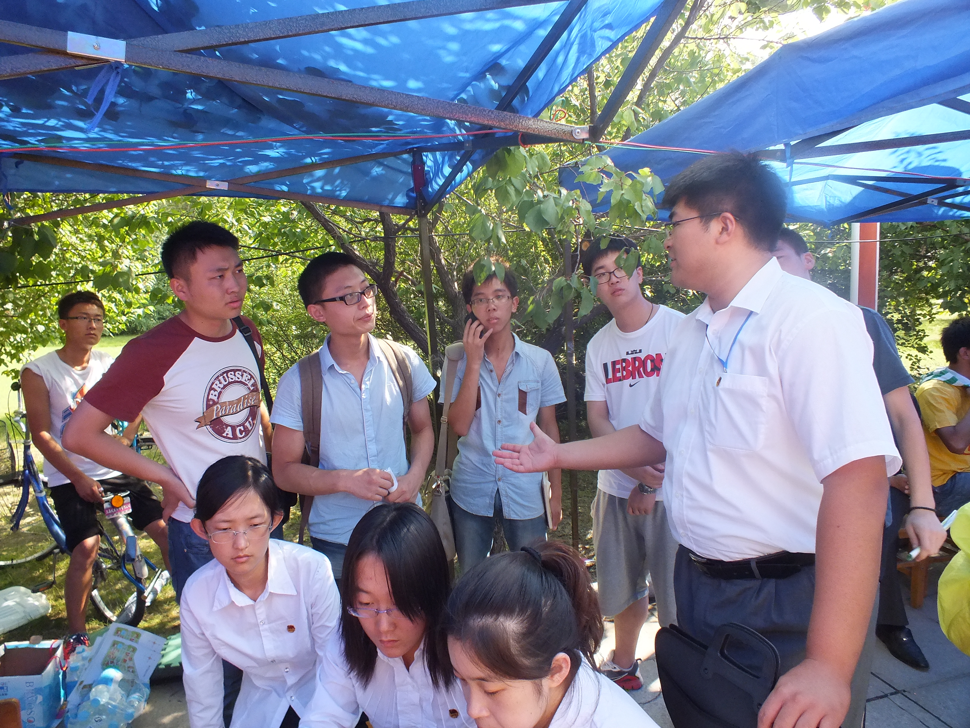 为了方便提前到校的新生顺利入学,积极热情的行政学子们在21日一早就开始了紧张有序的新生接待工作。学院在中心校区东门和北门都设置了临时接待站,为同学们提供最便捷的服务。在临时接待站的值班同学除了担任我院新生的引路人之外,还为过往的家长耐心的答疑解惑,使新生和家长们倍感温暖。学院正式迎新点设在五月花广场,各学院搭起帐篷,拉起条幅,欢迎新生的到来。我院工作人员身着正装,佩戴团徽,充分展现了行政学子的精神面貌。他们在迎新点引导新生填写各类信息、办理入学手续,并为陪同等候的家长提供细致入微的服务。完成入学手续的办理,13级新生在志愿者的帮助与带领下去往寝室。为了减少新生和家长们的负担,志愿者们主动扛过沉重的行李,一趟趟的奔波于迎新点和学生公寓之间,挥洒着自己辛勤的汗水。