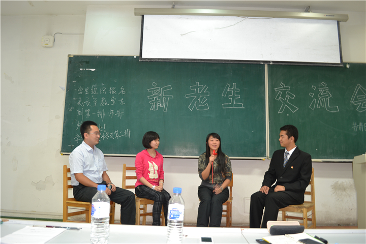 为了让大一新生能够更好地了解大学生活,更科学地规划自己的大学学习生活,行政学院于9月14日下午2点半在中心校区第三教学楼三阶成功举办行政学院2013年新老生交流会。2010级优秀学生代表韦姮慧、张孟歌和张力伟应邀参加此次会议与2013级全体新生交流大学学习生活经验。本次活动由院团委秘书部副部长蔡敏(2012级)主持。