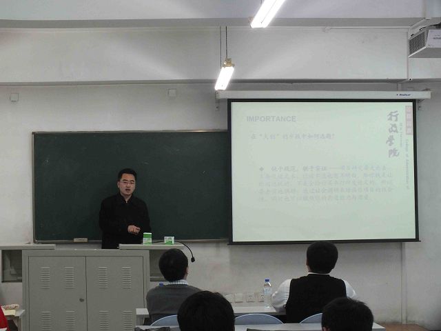 为提高学生学术研究水平,帮助学生更好地进行“大学生创新创业训练计划”(以下简称“大创项目”)项目研究和申报工作,行政学院学术文化沙龙秘书处于4月15日晚6时在中心校区第三教学楼405室成功举办了“大学生创新创业训练计划”项目申报培训会。行政学院副院长殷冬水应邀出席会议并担任主讲嘉宾、学院助理辅导员刘洋陪同参加,参加培训会的还有学院2010级、2011级、2012级部分学生。