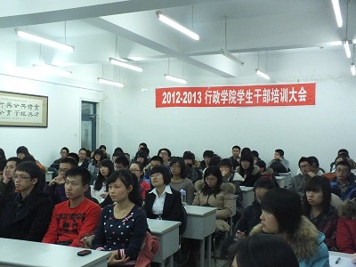 10月31日至11月1日,行政学院团委积极开展团校工作,在中心校区逸夫教学楼219教室成功举办2012-2013学年第一期学生干部培训班。行政学院党委副书记兼副院长佘彦、学生工作办公室主任史慕华、国际政治系姚璐、助理辅导员刘洋应邀出席并担任主讲嘉宾。行政学院团委、学生会主要学生干部及2012级全体学生干部参加本次培训班。