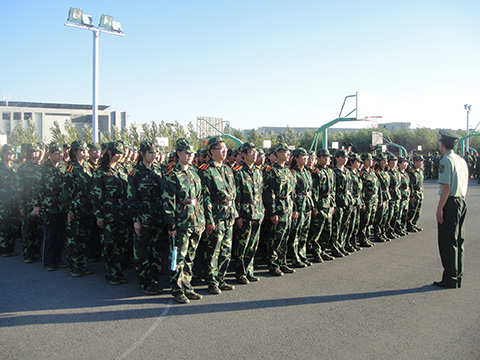 随后,新生们在教官们的带领下投入到了火热的军训之中。今年由行政学子组成的三营三连与其他连队相比不仅人数较少而且有超过三分之二是女同学,但在辛苦的训练中,行政学子却展示出更高的热情和信心。每天早上天才蒙蒙亮,新生们就开始了一天的军训,晚上八九点钟才完成一天的训练任务。站军姿、踢正步、蹲姿、跨立以及各式各样的分解动作,一遍遍的重复练习使同学们非常疲惫,但也使大家的“基本功”变得越来越扎实。