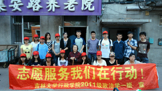这感人的一幕,发生在长春集安路养老院里,这位大学生志愿者便是来自吉林大学行政学院政治学一班的学生。在父亲节来临之际,6月9日星期六这天, 2011级政治学一班全体同学来到吉林省长春市集安路养老院进行社会志愿服务活动,本次活动同时也得到了长春晚报和吉大新闻网的报道。
