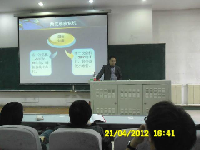 最后,郭锐老师还就“朝鲜卫星发射失败对朝核问题的新影响”、“朝核问题与台海、南海问题间的联系”等时政性问题与同学们深入交流,为同学们答疑解惑。郭锐老师全面详实的讲解,幽默风趣的谈吐赢得了同学们的阵阵掌声。