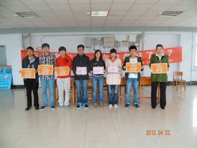 4月22日下午一点,由我院海化社主办的多米诺骨牌之五大社团素质拓展活动在经信教学楼5楼成功举行。院团委社团部部长牟明标,成功学协会、MT协会、自强社和荒岛诗社等社团的负责人担任评委,院三支队伍在内的九个团队参与了比赛。