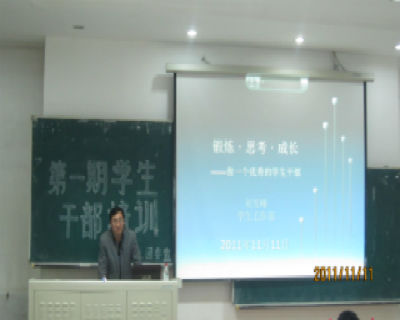 随后,佘书记以拆词法对学生干部这一角色进行了剖析:要从“学”开始,树立积极好学的心态,追求改变;“生”是生活,“生”是现实。要立足现实,脚踏实地;“干”是实践,“部”是环境土壤,要学会融入“部”这一团体。两位老师深入浅出且富有哲理的话语赢得了同学们的阵阵掌声。首日培训在热烈的气氛中圆满结束。