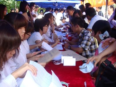 28日的报到工作基本接近尾声,但我院迎新工作人员仍以饱满的热情和认真负责的工作态度在绵绵细雨中迎接新生的到来。截至15:00,除部分新生不能按时报到外,其他同学均已完成报道程序,全体工作人员撤离迎新点,至此,行政学院2011年迎新工作圆满结束。