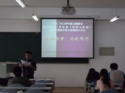2011年9月14日,行政学院2010级政治学二班团支部在中心校区第三教学楼409室召开了以“服务社会、你我同行”为主题的新学期首次班会暨2010~2011学年度《形势与政策》课程实践教学部分成绩统计会议。出席本次会议的有学院志愿者工作部(简称志工部)部长以及行政学院10级政治学2班的全体同学。