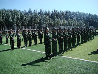军训生活是辛苦的。每天早晨,同学们迎着朝阳出早操,开始了一天的辛苦训练。站军姿、练齐步、踢正步,一次次的重复练习让同学们的基本功越来越扎实。九月仍显灼热的阳光使汗水一次次打湿了同学们的衣服,但同学们依然没有抱怨一声苦、一声累。为了一个团队的整齐,大家可以保持站军姿长达几个小时,也可以无数次重复一个又一个分解动作,直到“百人如一”。