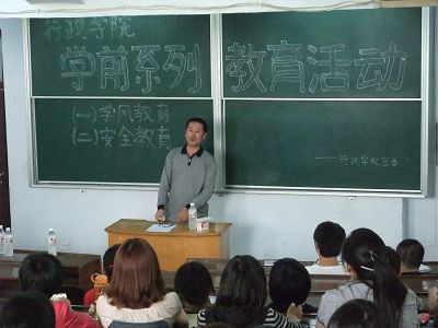 8月31日下午,行政学院在萃文七阶进行了10级新生学前系列教育之学风教育。行政学院副院长李言,辅导员马景惠老师应邀出席;各班班主任,团委主要学生干部以及10级全体新生参加了活动。