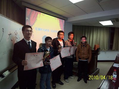 大赛由牟明标、李冰主持,行政学院团委书记马景惠老师、团委副书记田治琛及团委各部部长出席了大赛并担任评委。大赛首先播放了开场短片,紧接着展播了09级四个班的参赛作品,分别是一班的《青春记忆》、二班的《王牌制片人》、三班的《情系西南》和四班的《坚强的心》。各班的作品以自身独特的风格、别具匠心的设计给在场的观众带去了快乐、感动和反思。接下来进行了一场配音游戏。游戏参赛者诙谐的表演增添了大赛轻松融洽的气氛。经过激烈的角逐,最终评出了四项团体奖 ——一班荣获最佳视觉效果奖 ,二班荣获最佳化妆(服装)奖,三班荣获最佳原创剧本奖,四班荣获最佳影片奖;六项个人奖—最佳男主角:刘洋,最佳女主角:洪桑桑,最佳男配角:王宏伟,最佳女配角:唐馨h,最佳导演:牟明标,最佳剪辑:李诗。最后,由团委副书记田治琛做最后总结。
