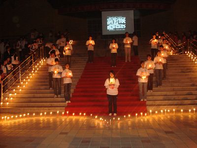 我院学子在辅导员马景惠老师的带领下,积极参与了这次活动,大家怀着沉痛的心情悼念死者,用满怀希望的心关爱生者,在活动中,我院学子积极参与为灾区人民献歌,守护爱心蜡烛,并在活动结束后慷慨解囊,尽自己一份绵薄之力帮助灾区那些需要爱来走出阴霾的花朵。同学们经过这次活动,感受到了更加强烈的民族凝聚力,更加坚定了自己作为当代大学生应积极履行的社会责任。同时,我们真诚的祝愿我们的善举能为灾区重建,为灾区小朋友过一个温暖的节日作出一点点贡献,祝愿灾区的明天更美好。