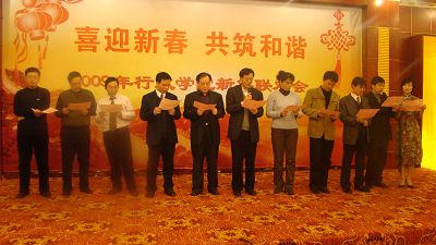 2008年12月29日下午5点,行政学院全体教职员工欢聚一堂,举行2009年元旦联欢晚会。吉林大学党委书记陈德文教授和副校长张晓林教授应邀出席了联欢会,与行政学院全体人员共同欢庆,行政学院现在校机关各部门工作的毕业生也作为院友代表参加了联欢会。
