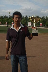 自小学期间在校运动会上取得优异成绩并打破校记录后,金锋同学就与体育结下了不解之缘。金锋同学在一系列体育赛事中的优秀成绩不胜枚举:2004年初在长春市朝阳区运动会跳高项目中以1.93米的成绩取得全区第1名,勇夺桂冠。同年夏,又在中日韩三国青少年选拔赛上以1.95米的好成绩获得了第二名。同年秋,被吉林省实验中学特招录取。在校期间,金锋同学在努力学习的同时,仍坚持刻苦的训练,达到了文化素质和身体素质双重发展!其后在长春市运动会上以1.85米的成绩取得全市第2名并被授予国家二级运动员证书。为了梦想,金锋同学从未对自己放松过要求。那骄人的成绩背后不知是多少个春秋冬夏付出的汗水。有付出就会有回报,终于在2005年吉林省青少年杯田径运动会上以2.00米的成绩技压群雄,摘得金牌并被授予国家一级运动员证书。2006年参加吉林省运动会又以1.86米获取全省第2名 。鉴于优异的成绩,金锋同学于2007年夏被985国家一流重点大学吉林大学免试录取。来到更大的舞台,金锋同学用行动再次证明了自己,在刚刚结束的校运动会上,带伤勇夺标枪第一和保证跳高第二的佳绩,了我院再创佳绩!比赛虽然结束,但梦想仍在继续。让我们祝福金锋同学在梦想的路上越走越远!