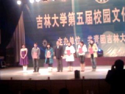 2007年12月14日晚六点,在我校南岭校区的文体活动中心举办了吉林大学第五届校园文化节的颁奖仪式。由我院选送、大一新生编剧并主演的古装轻喜剧《孔雀东南飞新编》在众多竞争者中脱颖而出,最终赢得了校园文化节情景剧大赛决赛的二等奖。