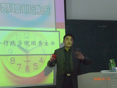 2008年4月10日晚,由行政学院团委主办的第一期“学生干部培训讲座”在三教七阶举行。辅导员马景惠老师应邀出席。