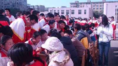 六十人分为三支队伍:长春二中高一高二部,高三部,吉林大学附属中学部。重回高中,那似曾相识的紧张氛围让我们感慨万千。想想以前自己走过的这段岁月,我们愿意为同学们答疑解惑,帮助他们走过这段奋斗的日子。我们分为语文、数学、英语、文综、理综和心理六个组便于同学们有针对性的提问。由于大一的同学刚走过高三又与高三同学年龄相近,他们之间能够引起共鸣,交谈得非常深入,涉及的面广,有各学科的书本知识,有高考应对技巧,有心理压力,也有大学生活等等。现场气氛十分活跃。活动一直持续到下午两点。大一的同学感到高兴而充实,大学以来第一次参加实践活动既帮助了别人又锻炼了自己的能力。