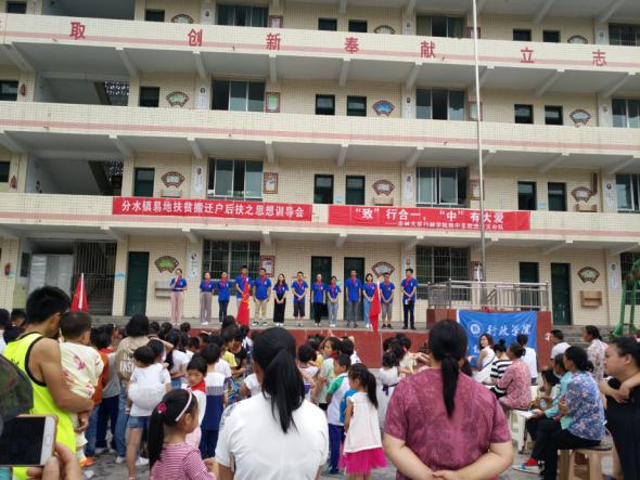 遵义市务川县分水镇地处山区,在精准扶贫政策下,分水镇进行了易地扶贫搬迁安置工作。搬迁后,村民的生活环境发生了改变,思想波动也较大。为消除搬迁村民顾虑,分水镇组织开展了易地扶贫宣讲系列活动。致中支教团遵义分队也积极参与到分水镇易地扶贫宣讲系列活动中。在分水镇镇政府的指导和支持下,遵义分队所开展的“分水镇易地扶贫搬迁户后扶[1]之思想训导会”成为分水镇易地扶贫宣讲系列活动的重要组成部分,为分水镇扶贫攻坚工作做出了贡献。