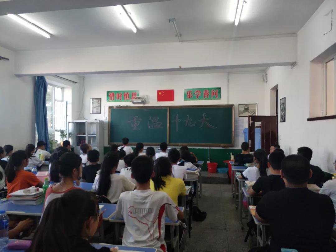2018年8月19,在公主岭市第六中学初二年级的课堂上,队员李方以“重温十九大 ,学习十九大精神”为主题与同学们展开交流。 队员围绕十九大报告中的四个新概念——新时代、新思想、新使命和新征程向孩子们进行生动有趣的讲解。接着,队员和同学们就教育事业中所追求的素质教育和教育公平以及热点话题“人工智能与教育的融合”展开了热烈的讨论。队员向同学们赠送了吉大明信片,并鼓励同学们培养公共意识、家国情怀,主动关心国家时事、自主学习、开拓视野。