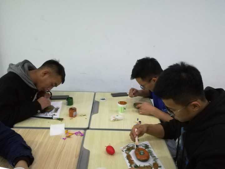 11月24日晚,行政学院081701班团支部与行政学院外语协会、政能量志愿者协会在吉林大学中心校区经信教学楼C101室举办了以“心系耄耋花甲,爱让石头开花”为主题的石头画志愿活动。本次活动由1班团支书吕雨函主持,1班部分同学及招募的志愿者们参加了此次活动。