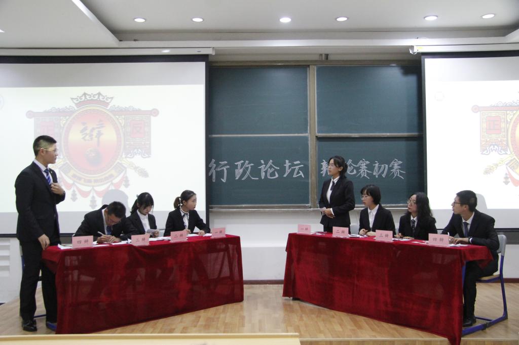 10月20日17时许,“行政论坛”新生辩论赛在经信F7阶梯教室正式拉开序幕。担任本次辩论赛的评委有:行政学院行政管理系副教授潘洪洋、院学生工作办公室主任刘洋、院团委书记曲畅竹以及两位博士生王迪和杨雪。本场比赛由侯佳谊(2018级本科生)、张梓琦(2018级本科生)主持。