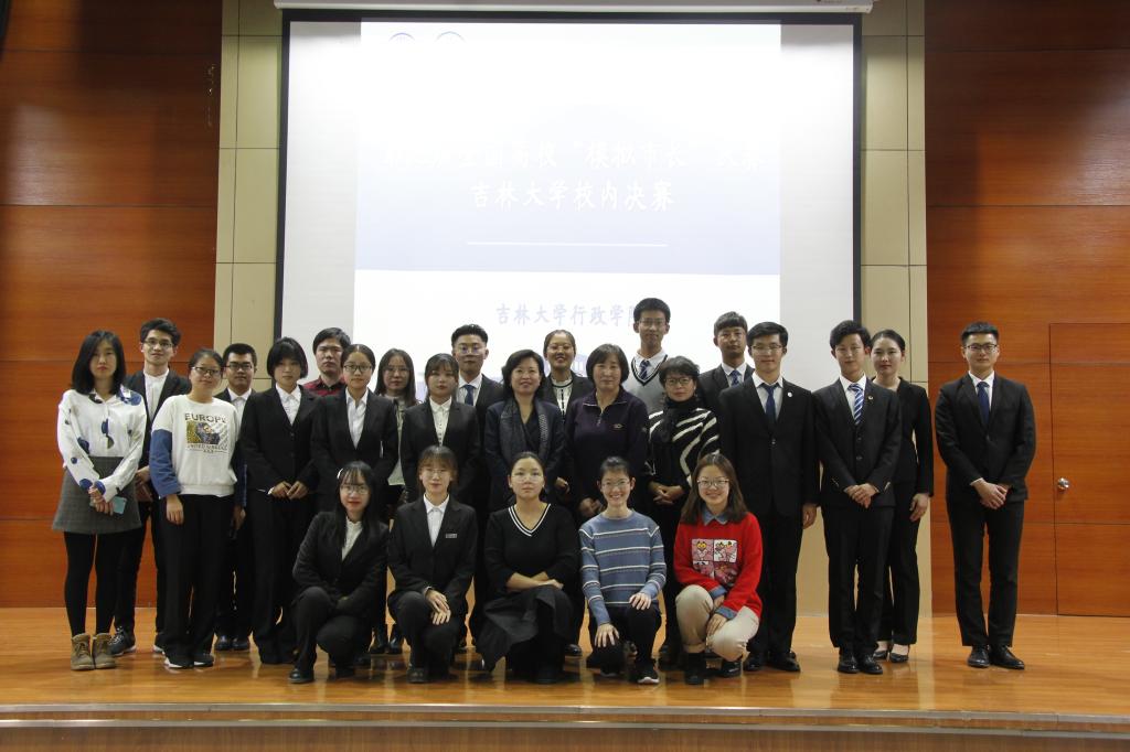 11月15日18时许,第九届高校模拟市长大赛吉林大学校内决赛于中心校区国际学术大讲堂举办。担任本场比赛的评委有:行政学院副院长许玉镇教授,行政管理系李靖教授、王庆华教授。经过评审,来自新能源与环境学院、经济学院、食品科学与工程学院、哲学社会学院、管理学院、行政学院等学院的七支队伍会师校内决赛。