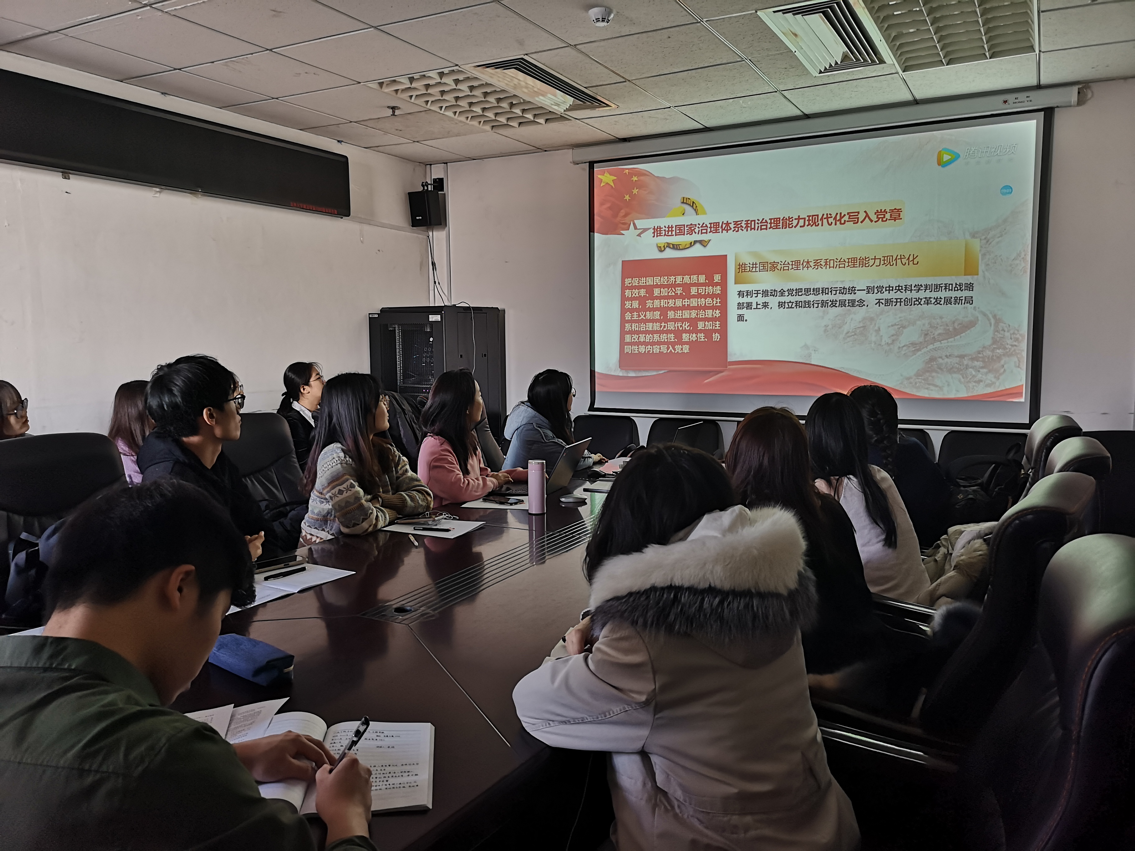 宣誓仪式结束后,在支部组织下,与会同学观看了学习党章的视频。通过学习交流,大家对党的性质、宗旨、指导思想、基本路线以及党的建设等内容有了更深入的理解,纷纷表示要自觉学习党章,执行党章,维护党章,并且把学习党章和学习党的十九届五中全会精神有机结合起来,做到真学、真懂、真信、真用,不走过场,不流于形式,用新思想指导新行动。