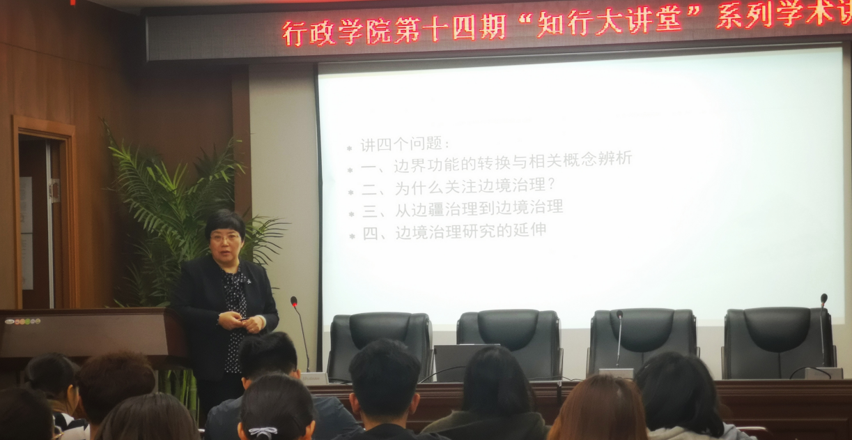 4月8日晚,吉林大学《行政之光》杂志社在中心校区举办了第十四期“知行大讲堂”系列学术讲座。本期讲座特邀吉林大学行政学院国际政治系刘雪莲教授,以“边界功能转换下的边境治理”为主题,分别从“边界功能的转换与相关概念”“为什么关注边境治理”“从边疆治理到边境治理”和“边境治理研究的延伸”四个方面为70余名本硕博同学带来了一场精彩的学术盛宴。本期讲座由《行政之光》杂志社策划部干事赵敏驰同学主持。