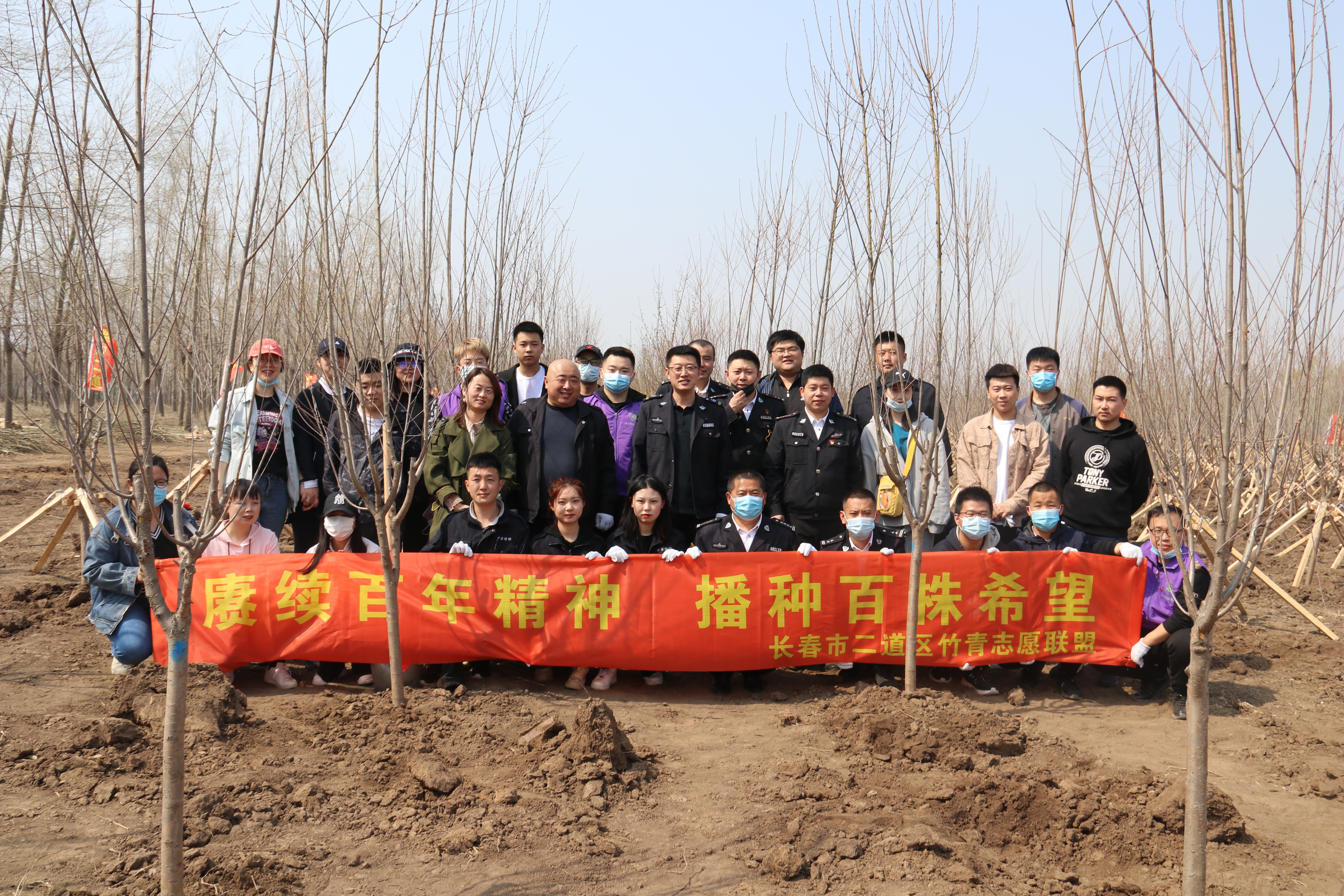春回大地万物苏,播种希望正当时。4月21日上午,我院志愿者师生参加了长春市二道区东站街道十委社区竹青志愿联盟“庚续百年精神,播种百株希望”主题植树活动。位于二道区英俊镇的植树现场一派热火朝天的繁忙景象。竹青志愿联盟的志愿者们一起挥锹铲土、扶苗围堰、拎桶浇灌,栽下一棵棵树苗、播种一个个希望。时值庆祝中国共产党成立100周年,全党开展党史学习教育之际,我院党团员志愿者师生用实际行动践行了“绿水青山就是金山银山”发展理念和谭竹青精神,为建设美丽家园贡献了力量。
