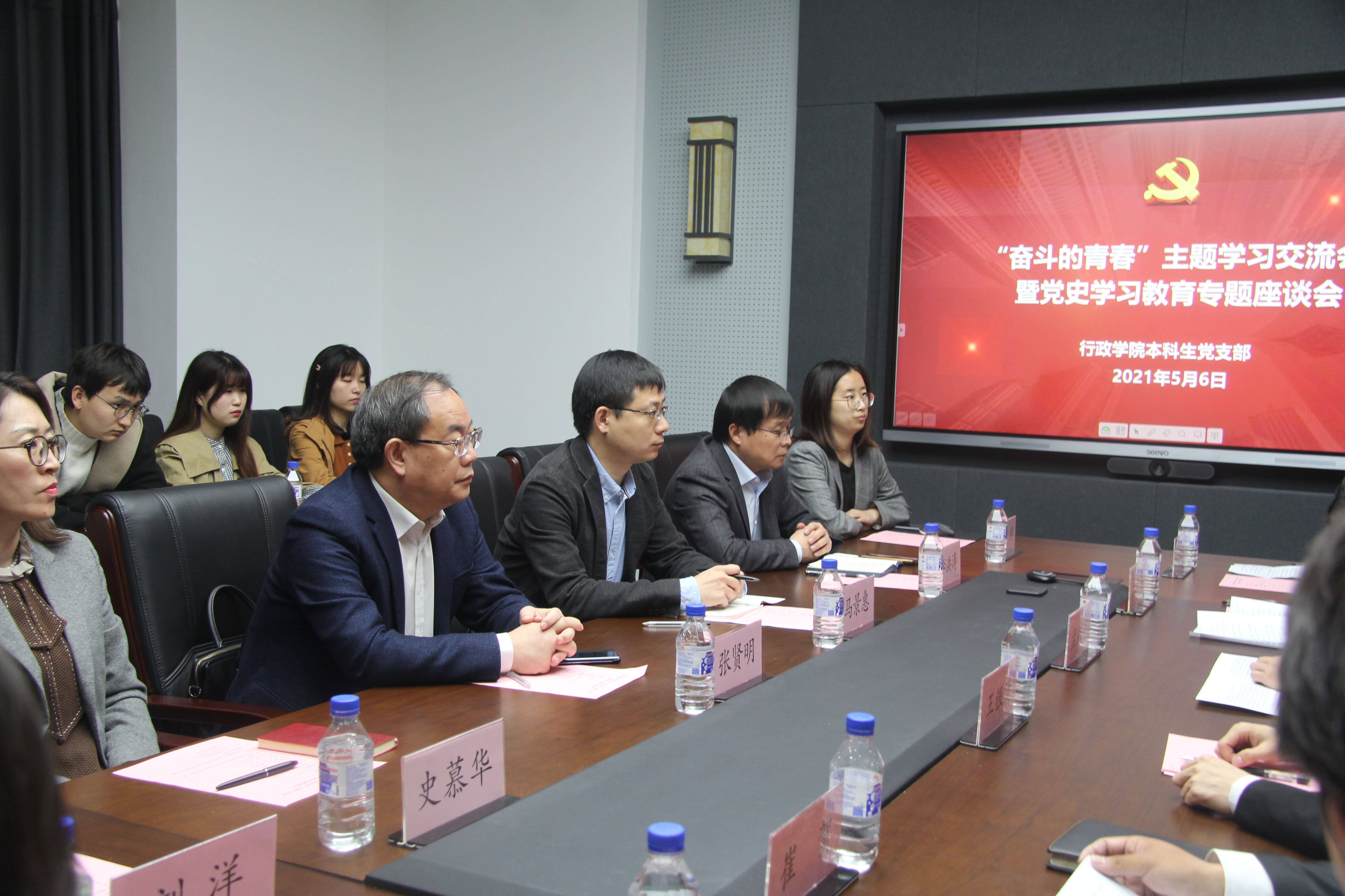 5月6日上午,行政学院本科生党支部在中心校区举办了“奋斗的青春”主题学习交流会暨党史学习教育专题座谈会。行政学院院长张贤明、党委书记马景惠、党委副书记史慕华、副院长季洪涛,辅导员刘洋、孙月与本科学生党员代表参加了交流座谈。