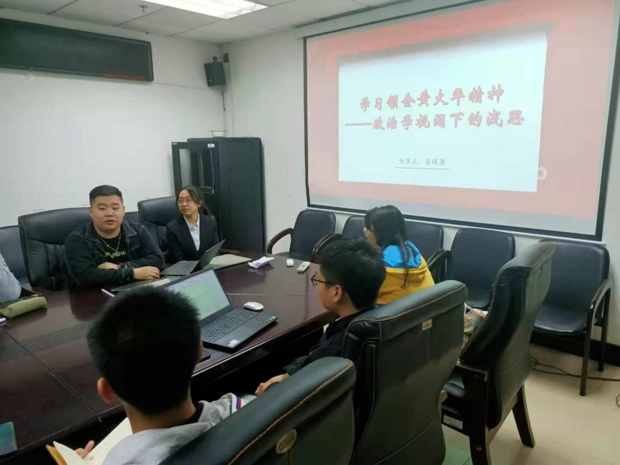 2021年5月24日是习近平总书记对黄大年同志先进事迹作出重要指示的四周年纪念日。为贯彻总书记的重要指示,传承弘扬黄大年精神,行政学院团委于5月28日在东荣大厦A1202室举办“心有大我,至诚报国——学习领悟黄大年精神”与信仰对话活动。王世亨(2017级本科生)、谷瑛淏(2018级本科生)及行政学院青年学习班(第三期)学员参与本次活动,陈佳妮(2020级本科生)担任主持人。