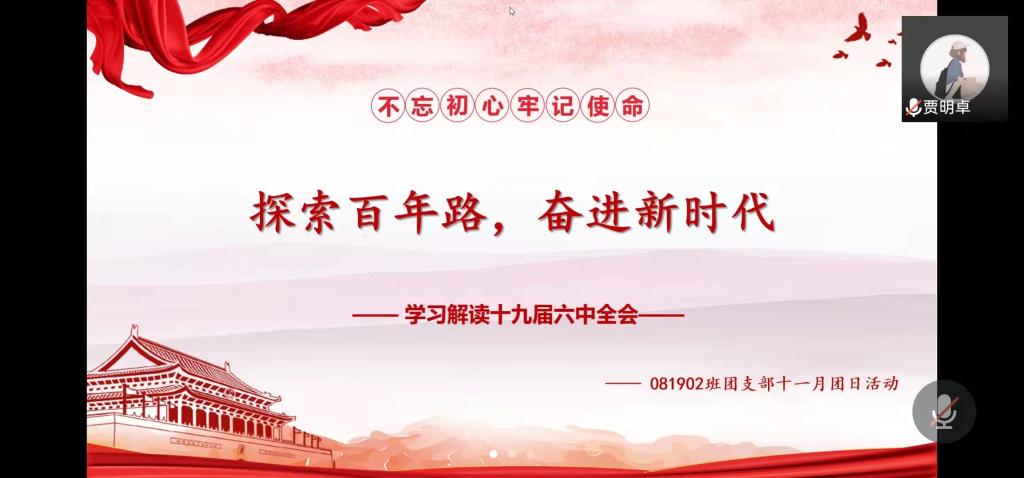 2021年11月8日至11日,在“两个一百年”奋斗目标历史交汇的关键节点,党的十九届六中全会胜利召开,全面总结了党的百年奋斗重大成就和历史经验,深刻揭示了“过去我们为什么能够成功、未来我们怎样才能继续成功”的历史启示。为深入学习党的十九届六中全会内容,深刻贯彻落实会议精神,在院团委的指导下,行政学院2019级各班团支部开展了主题为“探索百年路,奋斗新时代,聚焦十九届六中全会”的团日活动。