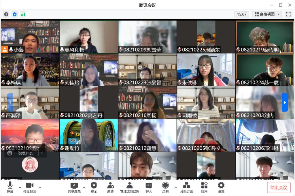 2021级五班班会由于淼同学主持,班主任赫泉玲老师和李慧杰老师与27位同学们视频见面,轻松愉快的开启了班会交流——封寝期间有意义的事。夏文贤同学分享了前几天担任了平层志愿者的感受,并提出上网课期间容易放空注意力的问题;接下来未返校的卫玉欣同学分享了最近阅读的书籍;徐众钦同学向大家讲述了在疫情期间选修其他大学的心理学的经历;满运璋同学介绍了“通过建立目标意识来管理自己”的学习方法。班会最后,两位班主任老师鼓励同学们要保持积极乐观的心态去面对生活,即使阴云短暂的遮住晴空,但等阴云散去,我们定会相逢在春日暖阳之下,并希望同学们能够把握宝贵时间,大步迈向未来!