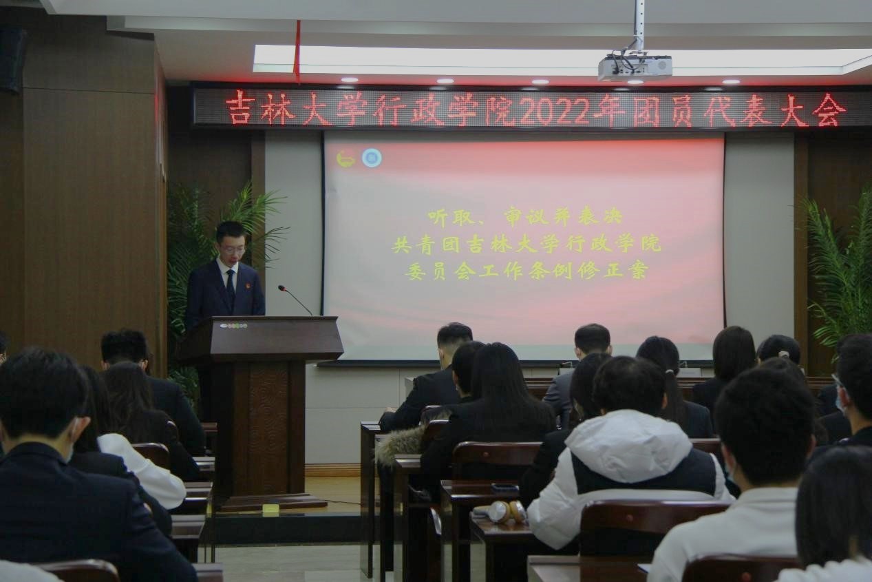 会议听取、审议并表决了《共青团吉林大学行政学院委员会工作条例修正案》与《共青团吉林大学行政学院委员会委员选举办法》,进一步推动了团的组织建设,促进学院共青团的组织建设与制度建设落到实处。同时,大会听取了新一届共青团吉林大学行政学院委员会委员候选人情况,并选举产生了新一届共青团吉林大学行政学院委员会委员,推动了行政学院团委骨干力量的更新换代。此外,本次会议通报了推选参加共青团吉林大学第十八次代表大会代表的有关事项。