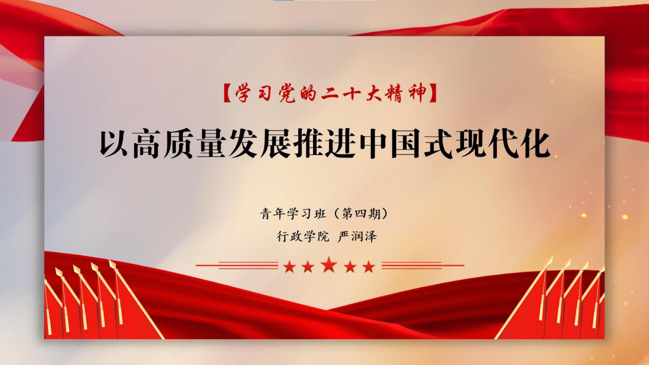 结业仪式在团歌声中拉开了帷幕。组织建设部负责人陈佳妮介绍行政学院青年学习班(第四期)开班一年来学习情况。从理论学习到实践拓展,青年学习班在遵循疫情防控的前提下举办了多项活动,成员们在这一年中收获满满、进步非凡。随后,学习班学员代表严润泽同学带领全体成员学习党的二十大精神。他对党的二十大报告的重点内容作出概括,强调坚持党的全面领导是党和国家的根本所在、命脉所在,是全国各族人民的利益所在、幸福所在,是实现中华民族伟大复兴中国梦的根本保证。接下来,由学习班代表小组进行学习成果展示,他们以短视频的方式展现了青年学习班一年来的感人瞬间,记录下成员们成长的蜕变。展示环节结束后,青年学习班(第四期)优秀学员代表叶兆东、黄琴两位同学分别发表了结业感言,分享了这一年来他们在学习班的心得体会。