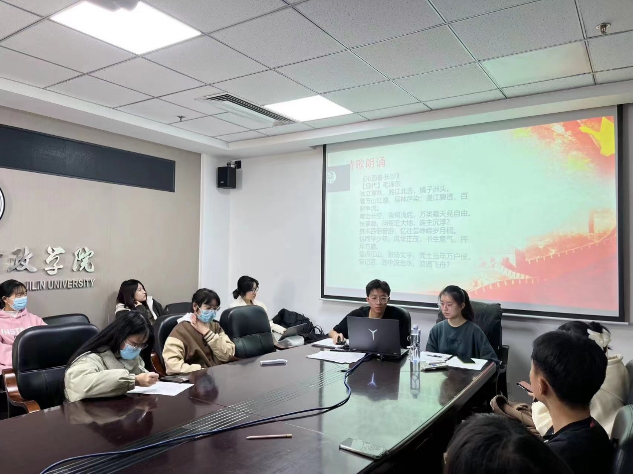 本次主题团课分为三部分:学习解读、讨论环节、总结环节。开始阶段,各班团支书对习近平总书记的二十大报告展开解读。王梓(2022级本科生)着重带领大家学习大会主题和重要内容,介绍了中国式现代化的基本方向与基本路径。毕妍欣(2022级本科生)对材料中提到的过去五年的工作和新时代十年的伟大变革进行深入解读。交流互动环节中,姜欣彤(2022级本科生)认为同学们应当坚定马克思主义信仰,将中国特色社会主义理论知识贯穿于我们的生活实践之中。孙明(2022级本科生)表示同学们应当认真学习,日后为民族复兴贡献自己的力量。刘婷婷(2022级本科生)鼓励同学们要坚定不移听党话、跟党走,怀抱梦想又脚踏实地。