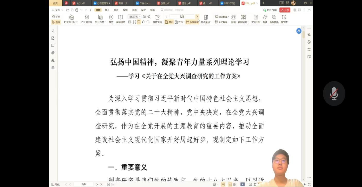 2023年3月,中共中央办公厅印发了《关于在全党大兴调查研究的工作方案》,并发出通知,要求各地区各部门结合实际认真贯彻落实。为认真学习方案内容,以习近平新时代中国特色社会主义思想武装头脑,全面贯彻落实党的二十大精神,行政学院2020级各班团支部开展了主题为“反对‘本本主义’,大兴调查研究之风”的团日活动。
