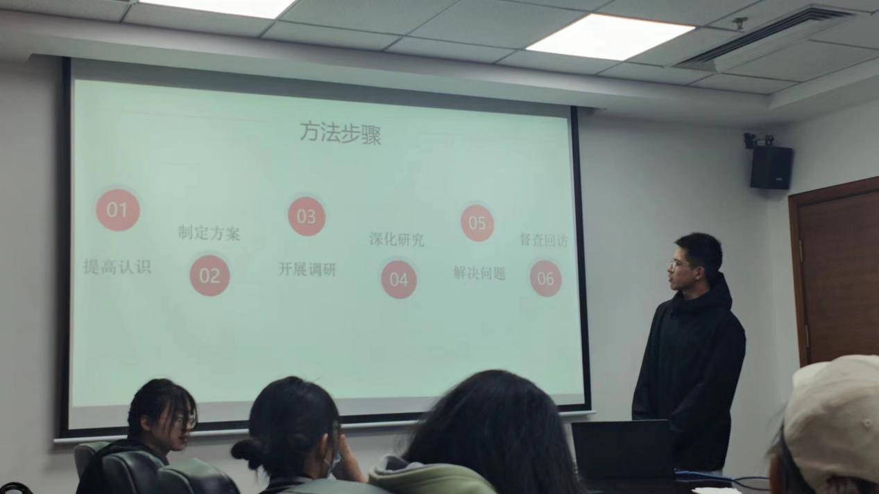 本次团日活动包含学习解读,交流分享,总结收获三个环节。在学习解读环节中,毕妍欣(2022级本科生)指出学习《关于在全党大兴调查研究的工作方案》的时代背景与重要意义。张蔚涵(2022级本科生)针对《关于在全党大兴调查研究的工作方案》的总体要求、调研内容、方法步骤、工作要求四部分做了分享讲解。在交流分享环节中,082204班团支部开展了《关于在全党大兴调查研究的工作方案》问答活动,活动以同学抢答的方式进行,在丰富同学们对调查研究相关知识的了解的同时,增进了同学们之间的友谊。陈思宇(2022级本科生)表示,在学习了《关于在全党大兴调查研究的工作方案》之后,深刻感受到了调查研究是谋事之基、成事之道,没有调查就没有发言权,没有调查就没有决策权;正确的决策离不开调查研究,正确的贯彻落实同样也离不开调查研究。在总结收获环节中,左宏渐(2022级本科生)认为,同学们要继承党的优良传统,积极运用所学的专业知识,进行调研活动并投身于广大的社会实践之中,在实现中华民族伟大复兴中国梦的新征程上奋勇前进,让青春在全面建设社会主义现代化国家的火热实践中绽放绚丽之花!