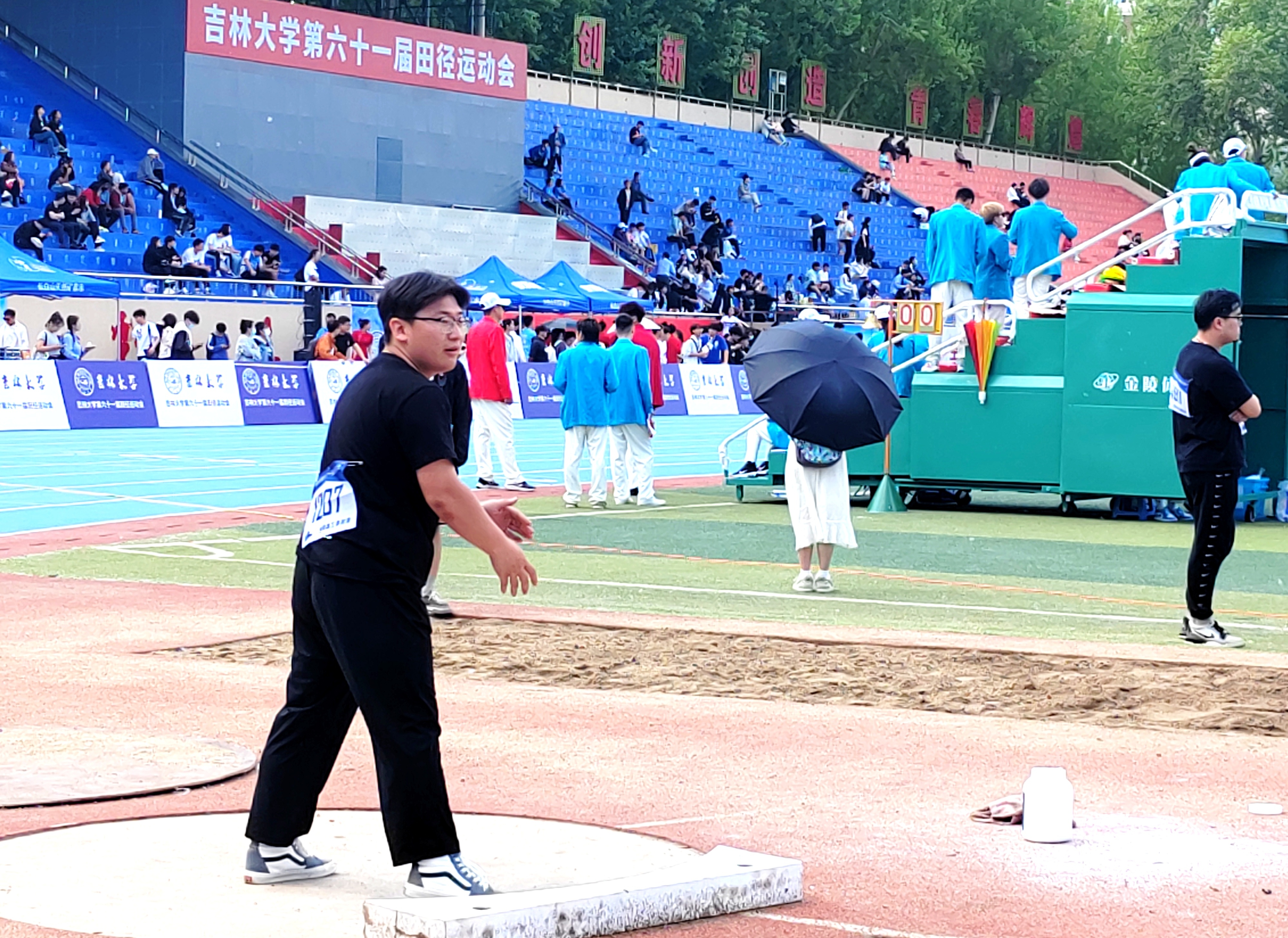 5月18日、19日,吉林大学第六十一届田径运动会在中心校区体育场隆重举行。看台上座无虚席,鼓点如潮,掌声雷鸣,行政健儿们在赛场上挥洒汗水,搏风击浪,尽展风采。
