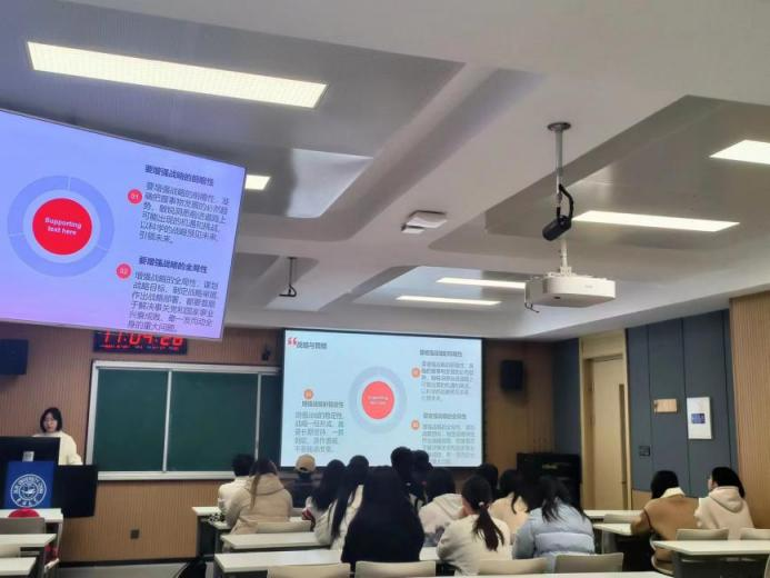 第二环节,视频引入。王楠(2023级本科生)分享了文章的相关视频资料。同学们紧跟主题学习会议精神,了解到中国式现代化的中国特色、本质要求和重大原则,也更加明确了推进中国式现代化是一个系统工程,需要统筹兼顾、系统谋划、整体推进,正确处理好一系列重大关系。