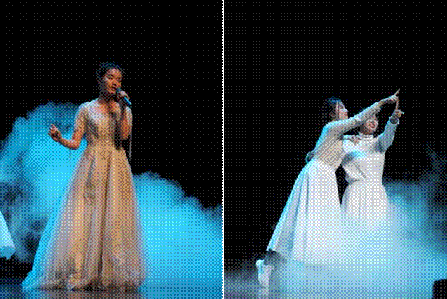 晚会在研究生合唱《飞云之下》中拉开序幕,歌声中尽显当代青年的朝气与活力。