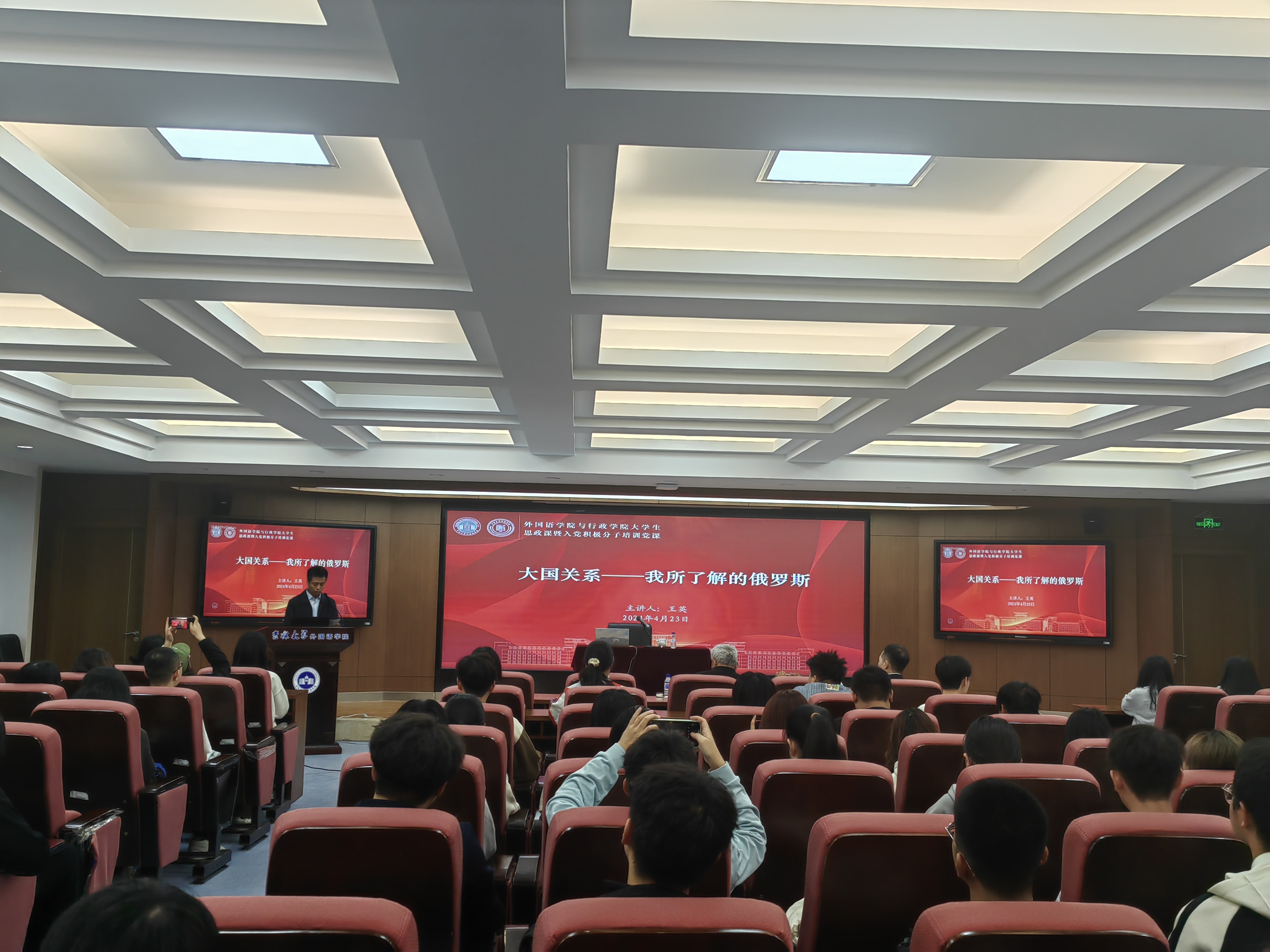 王英以《大国关系——我所了解的俄罗斯》为题,从外交使节和高等教育工作者的双重视角为同学们讲解了俄罗斯的自然资源、社会生活、产业经济、军事国防、高等教育、双边关系、旅游观光、政权更迭等概况,生动再现了驻俄使领馆的难忘往事。王英指出,俄罗斯是中国重要的全面战略协作伙伴,中俄关系对亚太、中欧乃至全世界的政治经济军事动向都有着重大而深远的影响。党的十八大以来,在推进新时代中国特色社会主义事业的伟大征程中,对俄关系乃至我国整体对外工作取得历史性成就、发生历史性变革,根本在于有习近平外交思想的科学指导。习近平外交思想是当代中国马克思主义、二十一世纪马克思主义在对外工作领域的最新理论成果,是中华文化和中国精神的时代精华在对外交往中的集中体现,为中国特色大国外交提供了根本遵循和行动指南。王英结合许多弥足珍贵的罕见影像,将自己的亲身经历娓娓道来,回顾了党和国家领导人对中俄关系的高度重视和对出国师生的关心关爱,肯定了吉林大学对共和国外交事业和留学生培养做出的历史贡献,展示了中国外交人才、国际友人和优秀留学生的时代风采,表达了对当代大学生特别是外国语学院、行政学院青年学生大好前程的期待和祝福。讲授过程图文并茂,生动形象,与会师生聚精会神,受益匪浅。