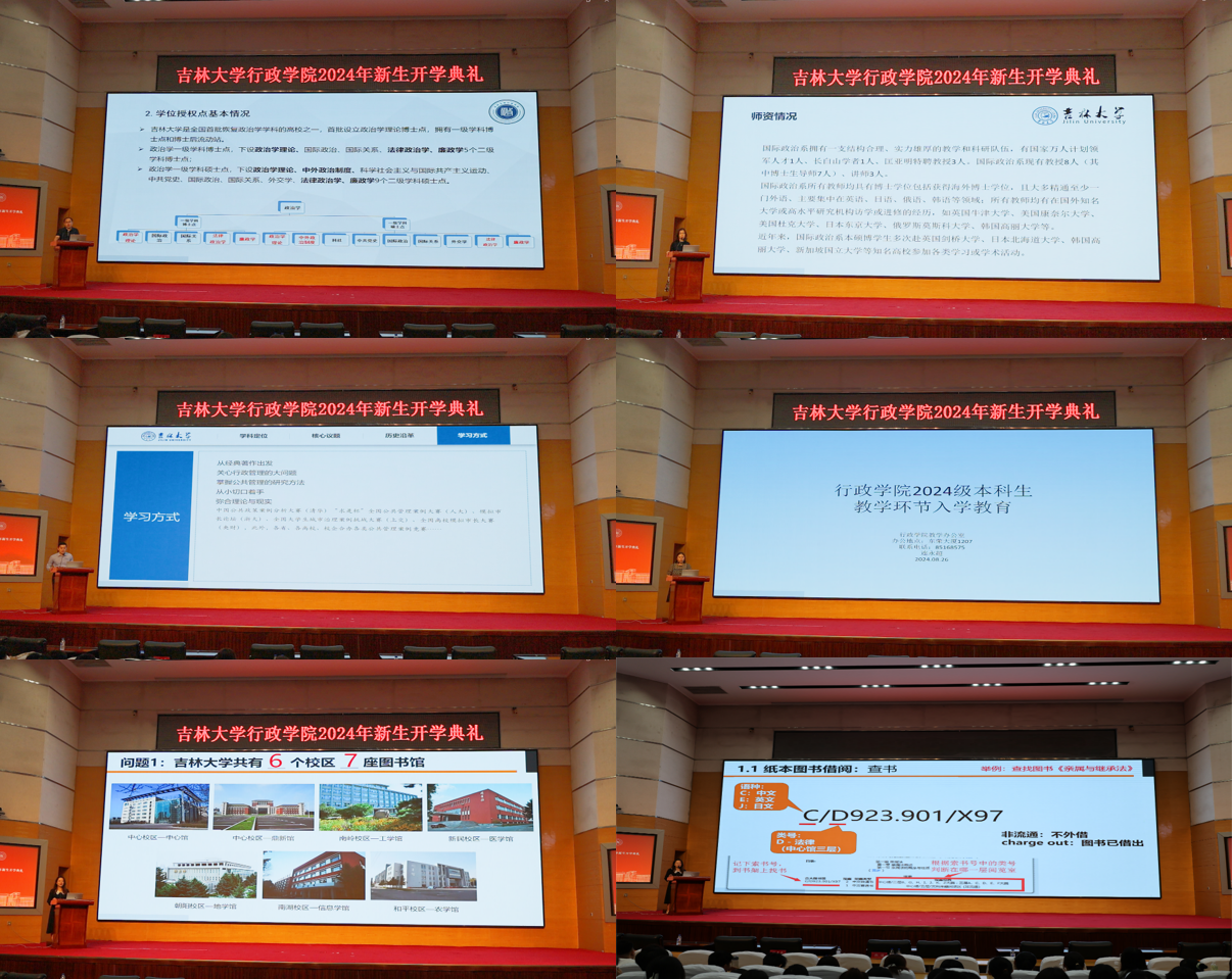 8月26日上午,学院开展2024级本科新生专业启蒙教育。政治学系田玉麒副教授、国际政治系宫笠俐教授、公共管理系青年教师常成分别做专业介绍,就学院三个国家一流本科专业的学科特色、学位授权、学习方法、师资队伍、毕业去向、第一课堂和第二课堂任务等方面进行了说明;教学办公室主任连永超就课程设置、考核形式、学分分配、初次选课、退补选课、重修刷分、转专业、辅修双学位、专业分流、大创项目、推免保研、校际交流等事项进行了说明,推荐了常用网站和系统平台。吉林大学图书馆参考咨询部石潇宇老师带领新生领略吉大图书馆馆藏之丰、检索之智、规则之明、环境之雅,全方位展示了学校图书资料信息化建设的重要成果,传授了与书为友学海泛舟的知识技能。