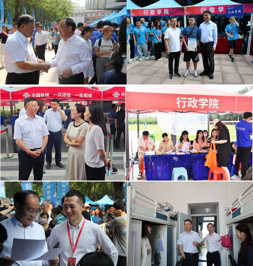 8 月 21 日至 25 日,321 名研究生和 140 名本科生满怀憧憬踏入校园,行政学院师生员工敞开怀抱喜迎八方来客。学校党委书记姜治莹、校长张希等校领导到中心校区北苑四公寓周边、清湖西岸看望新生并慰问迎新工作人员和志愿者,学院院长张贤明、党委书记陈希贵共同参与迎新工作。学院秉承热情周到、精准高效的原则为新生办理入学手续,快速核验学生身份,认真交接重要资料,精准发放爱心物资,耐心宣介报到须知,逐一特写合影留念。新生报到接近尾声时,学院领导班子成员和新生辅导员到学生公寓走访慰问。