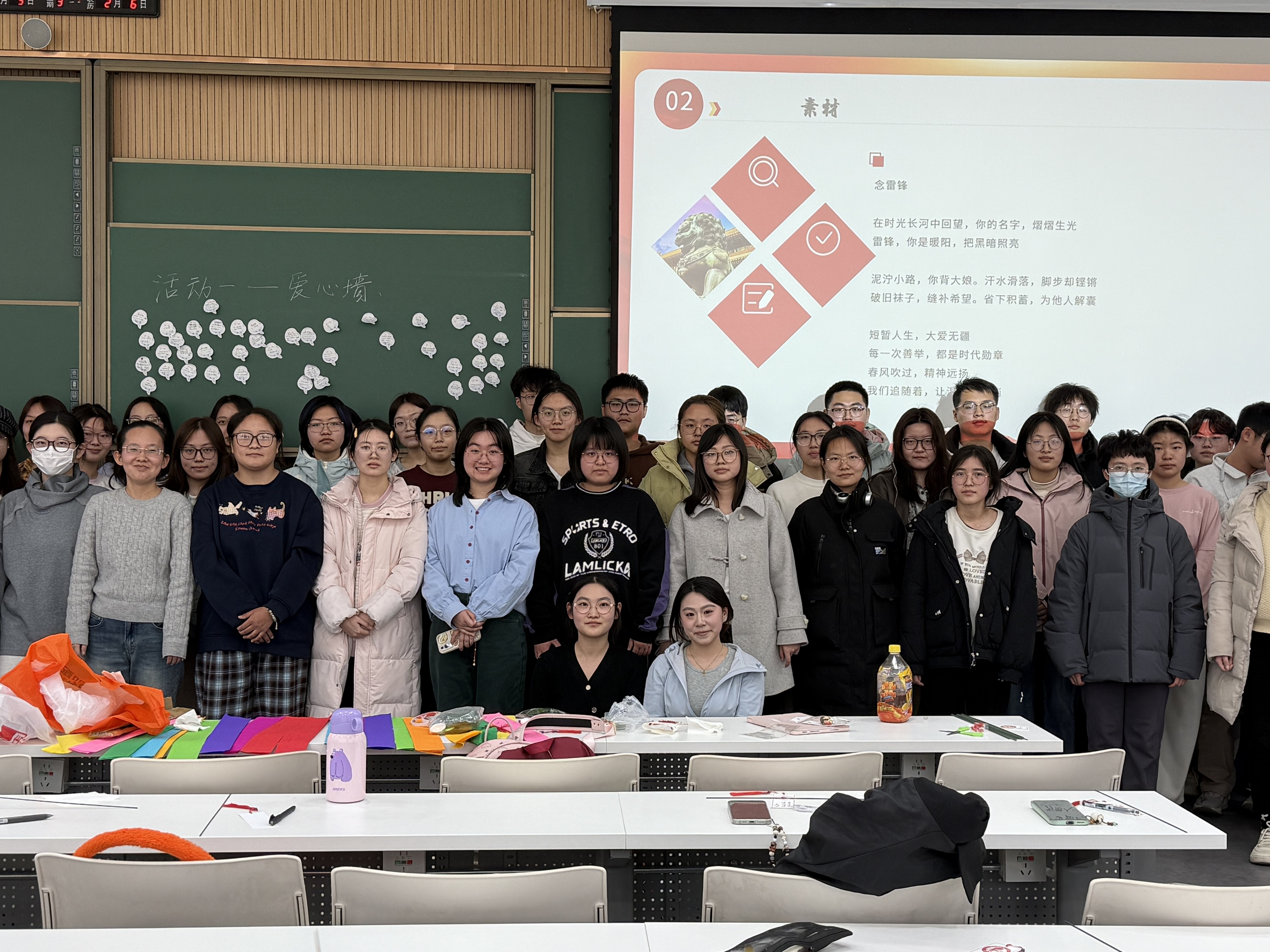 3月5日,行政学院082402、082405班团支部以“学雷锋 树新风”为主题,在法学楼305教室举办团日活动,旨在通过深入学习和实践,弘扬雷锋精神,增强同学们的集体荣誉感和社会责任感,激励大家以实际行动践行雷锋精神,争做新时代的好青年。第一环节,2024级本科生唐若菲带领大家回顾雷锋同志的生平事迹,重点讲述了雷锋同志在苦难中成长、在平凡岗位上无私奉献的感人故事。第二环节,同学们在教室的黑板上制作了一面“爱心传递墙”,用便利贴写下了自己的“微心愿”和“爱心寄语”,表达了对雷锋精神的理解和对身边默默奉献的劳动者的感激之情。第三环节,付诸实践。同学们将制作好的纪念品送给身边默默付出的人,如食堂的叔叔阿姨、校门口的保安、宿管阿姨等。同时,同学们纷纷响应活动号召,在图书馆当志愿者,扶被风吹倒的自行车,在实践中得到了成长和提升。