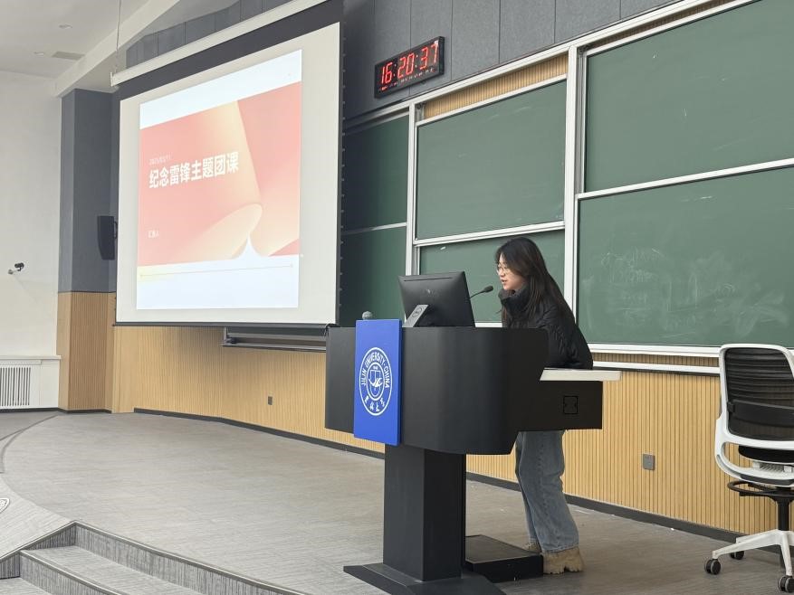 学习解读环节。唐若菲(2024级本科生)、安柏琪(2024级本科生)针对雷锋事迹进行重点概括与提炼,带领全体同学重温雷锋同志生平事迹,集中学习《雷锋日记》经典片段。通过沉浸式学习,同学们深刻感悟雷锋同志“把有限的生命投入到无限的为人民服务中去”的崇高理想。