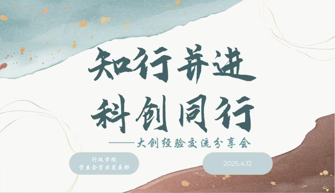 为帮助学院学生了解“大学生创新创业训练计划项目”相关信息,厘清关键环节与实施要点,4月12日,行政学院举办“知行并进·科创同行”大创经验分享会,学院2021级本科生严润泽、2022级本科生侯雨君分别结合自身大创项目经历,进行经验分享。