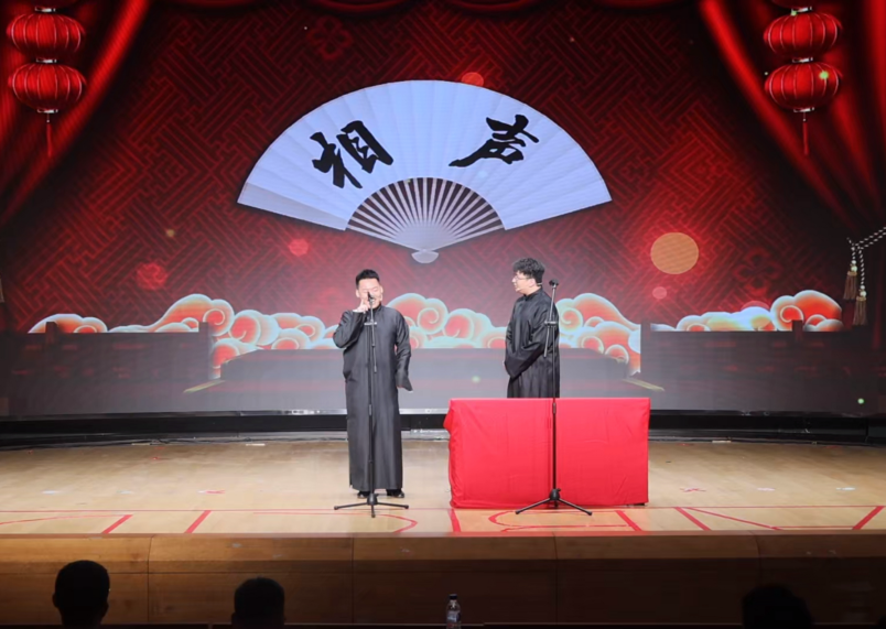 陈俊秀与裴传明两位同学带来相声《学小曲》。那些沉淀千年的传统,是先辈留下的精神密码,是刻在血脉里的文化基因。相声艺术,幽默风趣,是中华曲艺中的瑰宝,让我们暂时告别现代的喧嚣,一同走进了传统的曲艺世界。