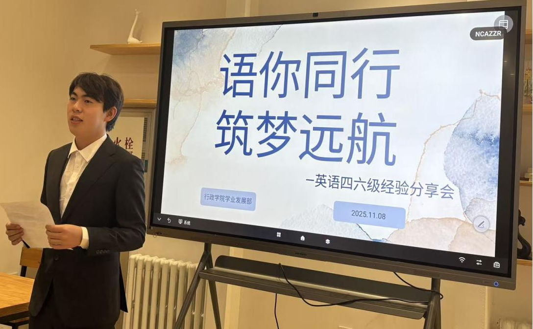 为帮助2025级新生备战大学英语四六级、雅思等考试,提升英语学习能力,掌握英语学习方法,行政学院于11月8日14:00—16:00举办“语你同行·筑梦远航”—英语四六级经验分享会。分享会由2023级、2024级2名优秀本科生担任主讲人,学院2025级部分本科生参与。
